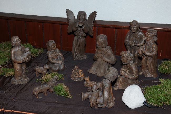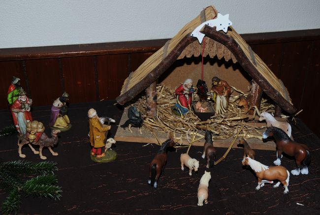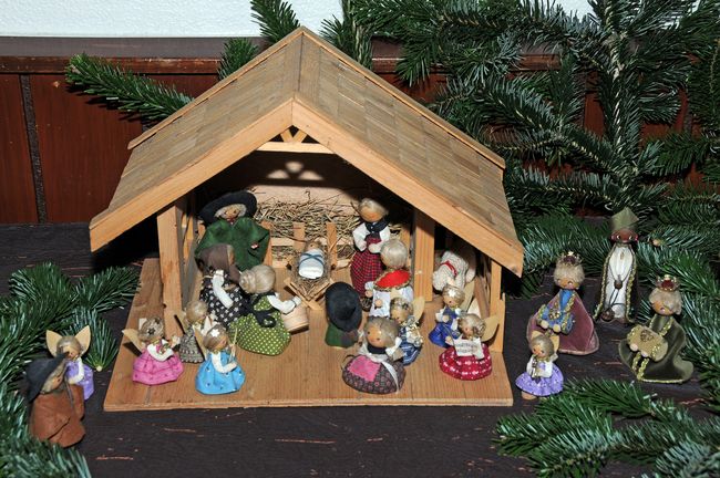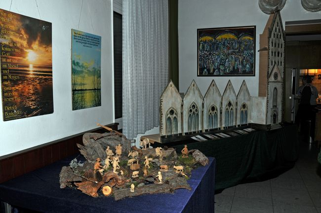 Am 2. Advent 2012 fand erstmals im Gemeindesaal von St. Martin eine Hauskrippenausstellung statt. Mitglieder des Pastoralverbundes konnten ihre Krippe von daheim mitbringen und aufbauen. Dazu gab es ein gemütliches Beisammensein bei Kaffee und Kuchen. Die Krippen-Leihgeber berichteten über die Geschichte und die Verwendung der Krippen in ihren Familien – ein Stück Krippenkultur vor Ort wurde sichtbar. Die Vielfalt der gezeigten, privaten Krippen war beeindruckend. U.a. gab es Krippen mit gekauften Holzfiguren (z.B. der bekannten Oberammergauer Firma Lang), eine Krippe mit sehr alten Gipsfiguren oder Krippen mit selbst getöpferten Figuren von Kindern und Erwachsenen. Dazu kamen liebevoll hergestellte Krippenställe. Die kleinste Krippe stammte aus Peru. Weiterhin war der Nachbau einer Krippenkulisse des Paderborner Domes zu sehen. Mit einer derartigen Kulisse wurde ab Mitte der 50er Jahre die Domkrippe im Paderborner Dom ausgestattet. Die Bemalung der Krippenkulisse wurde von unserem Gemeindemitglied Anne Pieper durchgeführt, die bereits im Jahr 2011 den Hintergrund der „Orientalischen Krippe“ von St. Martin gestaltet hatte. Am Tag darauf wanderte die Kulisse nach Paderborn. Dort vervollständigt sie die Krippenfiguren aus den 50er Jahren und wird im Pauluskolleg aufgestellt.