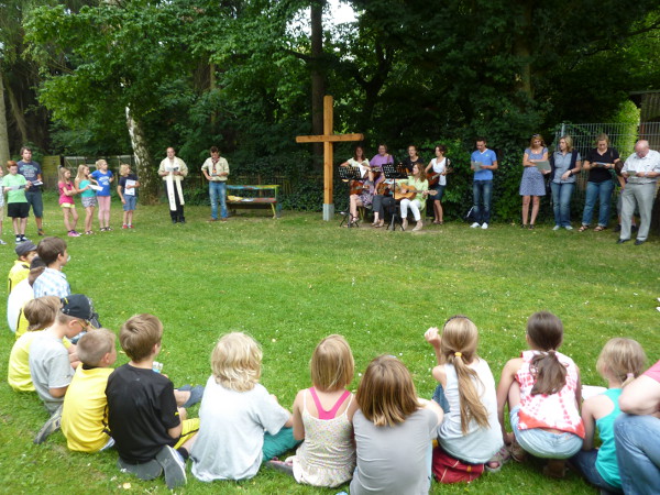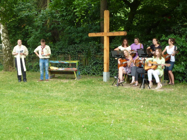 Am letzten Mittwoch vor den Sommerferien fand wieder der traditionelle Reisesegen am Kreuz neben der Kirche St. Meinolfus statt. Stammeskurat Benjamin Wiedemann und Krankenhauspfarrer Frank Wecker segneten kleine und große Pfadfinder, Leiter und Eltern sowie Gemeindemitglieder, die sich in den Ferien auf den Weg machen wollen. Nach dem Reisesegen saßen die Teilnehmer noch gemeinsam beim Grillen mit der KAB hinter dem Pfarrheim.